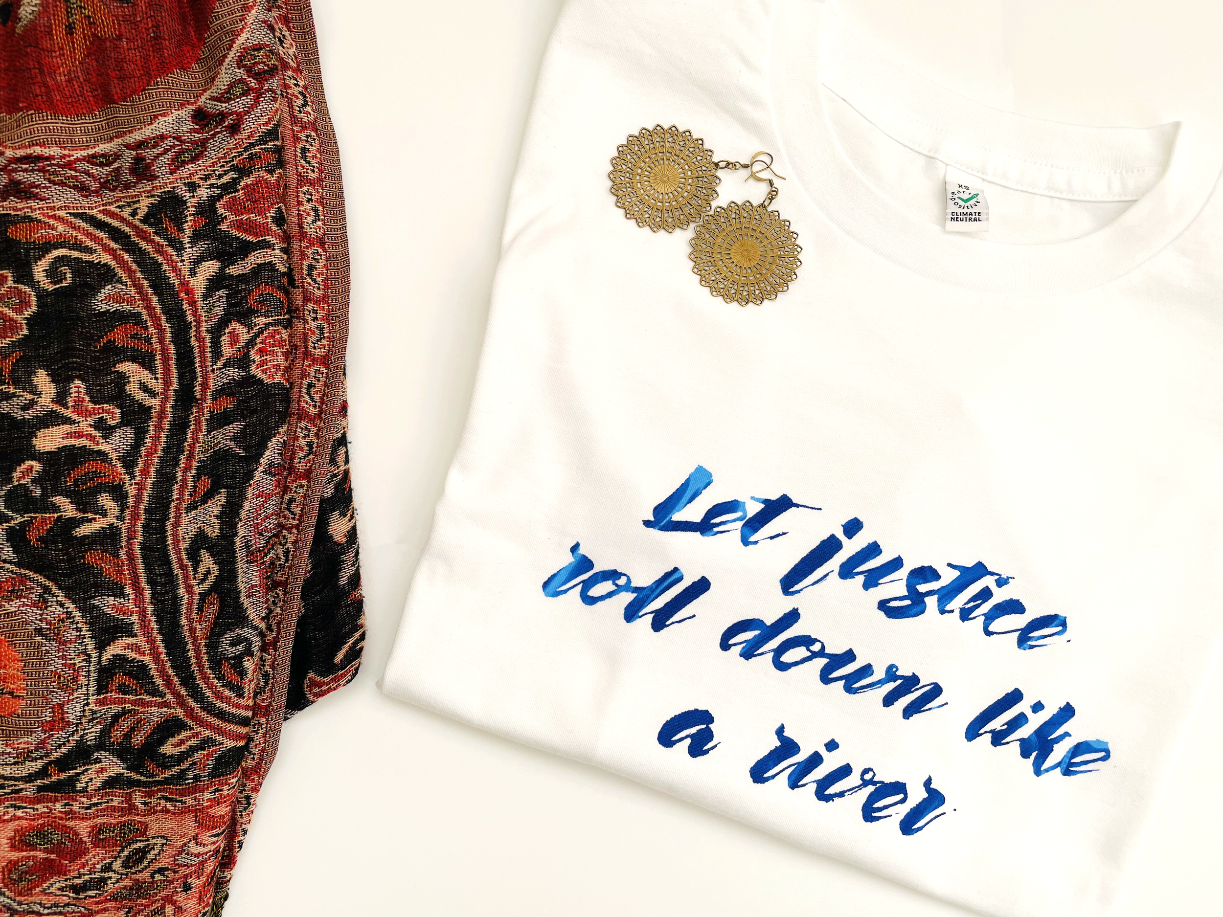 As Case researched the industry, she realized there were no Christian t-shirts that were progressive and inclusive in their messaging and theology, and that also prioritized ethical and sustainable manufacturing. “That really surprised me. And that’s how Arrayed was born. It feels like the truest expression of this vocation around human rights, climate justice, faith, and clothing that I have found to live into.”